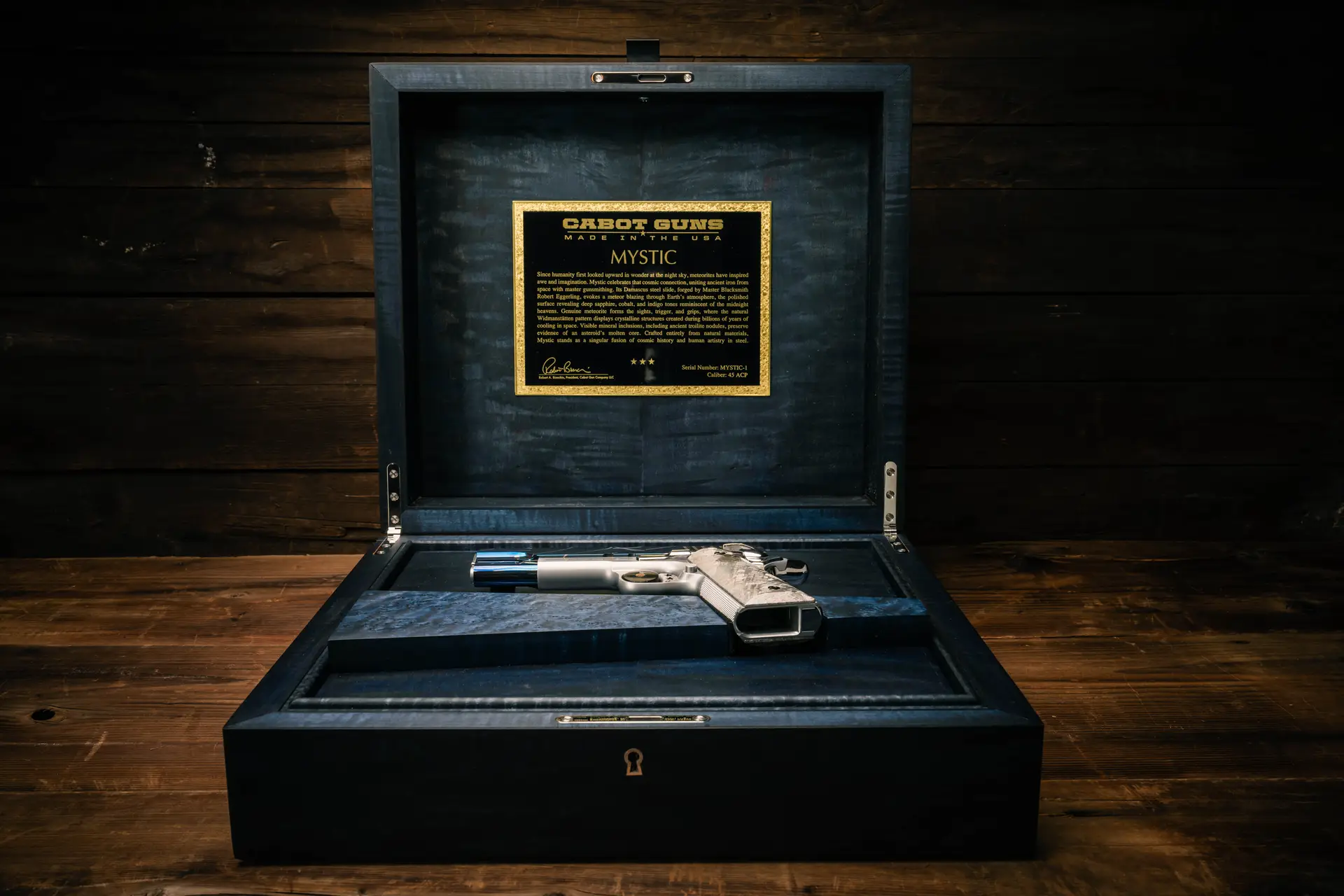 It is not a secret that Cabot Guns has a historical affinity for meteorite, the metal of legends and lore that has captivated generations. It has been 10 years since the launch of the Big Bang Pistols, the most significant, iconic and coveted pistol set ever created completely of meteorite by Cabot Guns. Mystic is our current OAK (One-of-a-Kind) offering that is a product of the melding of an affinity for meteorite and a tribute to the wonderment of our mystic natural universe.